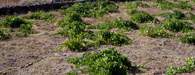 該島大多數葡萄園都位于該島的南部和西南部,地處由火山噴發而形成的火山巖和沙質土壤中,其水分和有機物的含量幾乎為零,因此可有效避免葡萄根瘤蚜(Phylloxera)的入侵。為了保護園內樹藤與果實免受當地的強風吹襲,葡萄種植者們將藤枝修剪成低矮的簍子形狀,使葡萄在其內側生長。然而,海風能夠促進空氣的流通,防止葡萄樹滋生疾病與腐爛,從而維持葡萄的健康生長。