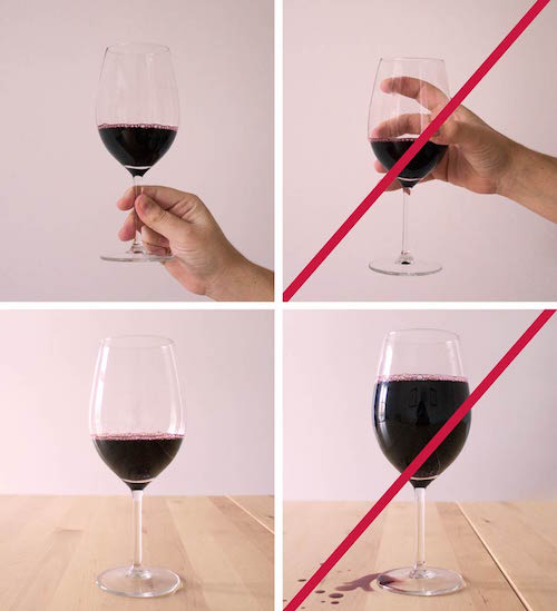 嚴(yán)格說來,葡萄酒持杯時,應(yīng)該用手指握住杯柱或杯底座,如果直接手握杯肚,由于手溫高于侍酒溫度,會導(dǎo)致酒液升溫,從而影響口感。