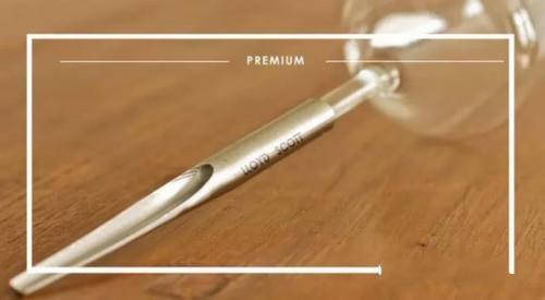 這款紅酒杯的上端設計和大家日常使用的紅酒杯相同,只不過在下端進行了創新設計。在酒杯的底部,并不是傳統底座式設計,而是采用了類似于針尖的形狀。