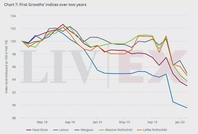 但是,紅顏容副牌(Clarence Haut Brion)、帕圖斯之花Fleur Petrus和拉古斯酒莊(Grand Puy Lacoste)的價格自上市以來都下跌了約10%。葡萄酒的價格似乎承受著越來越大的壓力。