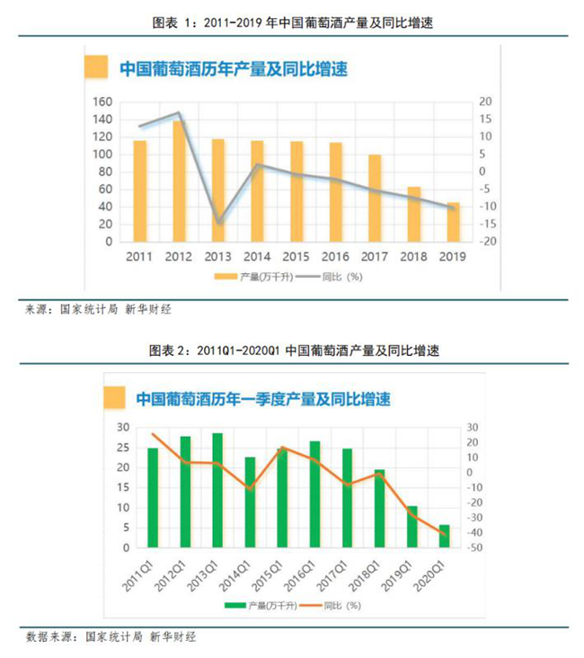 1、國產(chǎn)葡萄酒受疫情影響下滑加劇,2020Q2開啟弱復蘇