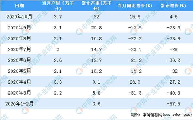 2020年1-10月全國(guó)葡萄酒產(chǎn)量統(tǒng)計(jì)